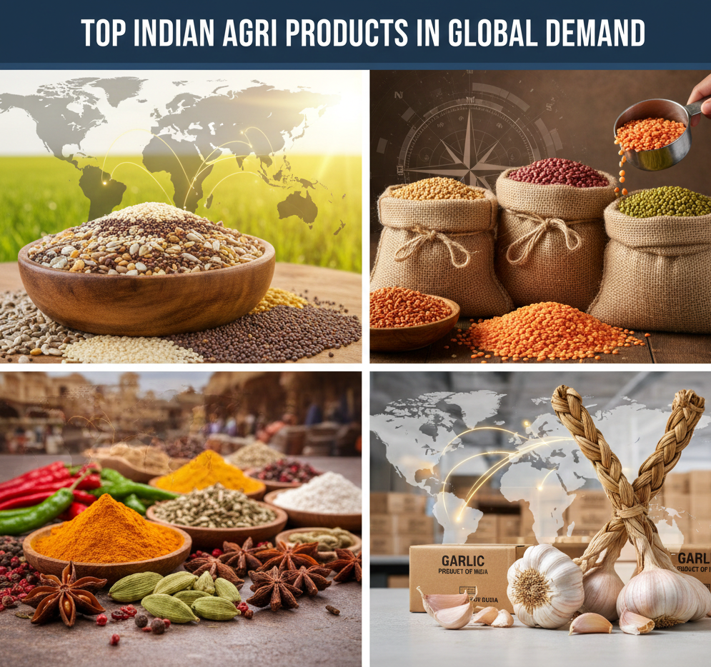 Top Indian Agri Products in Global Demand — Oilseeds, Pulses, Spices & Garlic