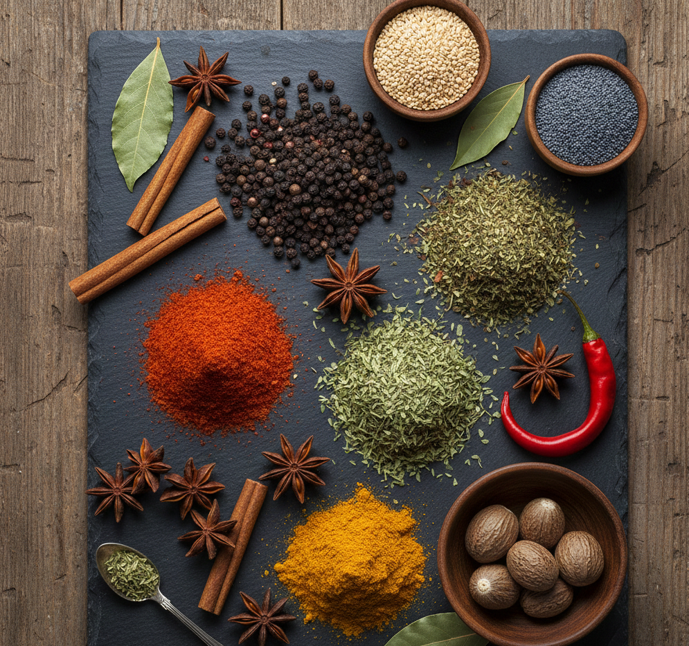 1. Spices (chilli, cumin, turmeric, others)